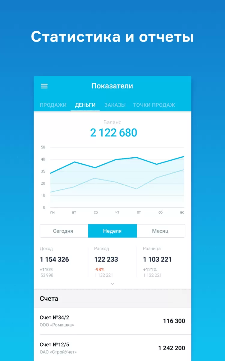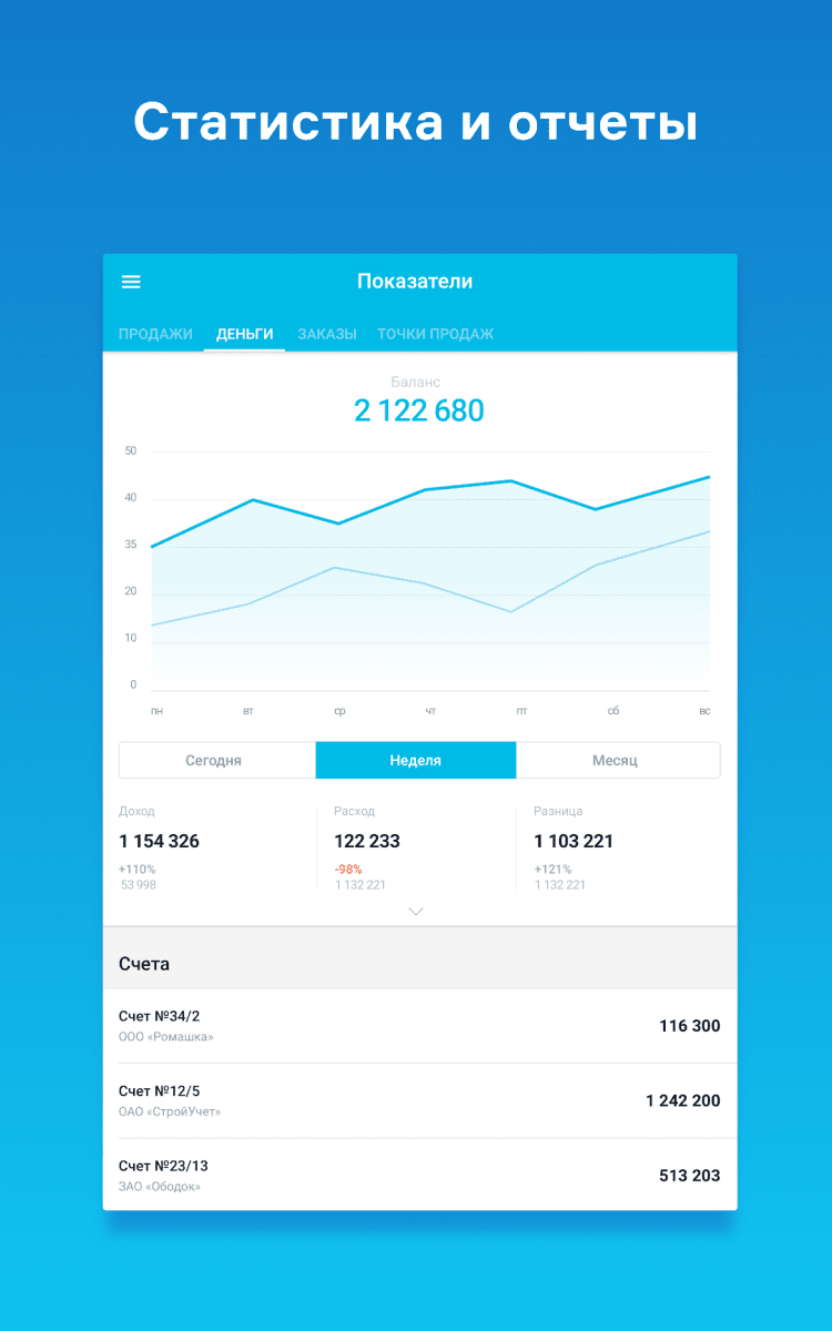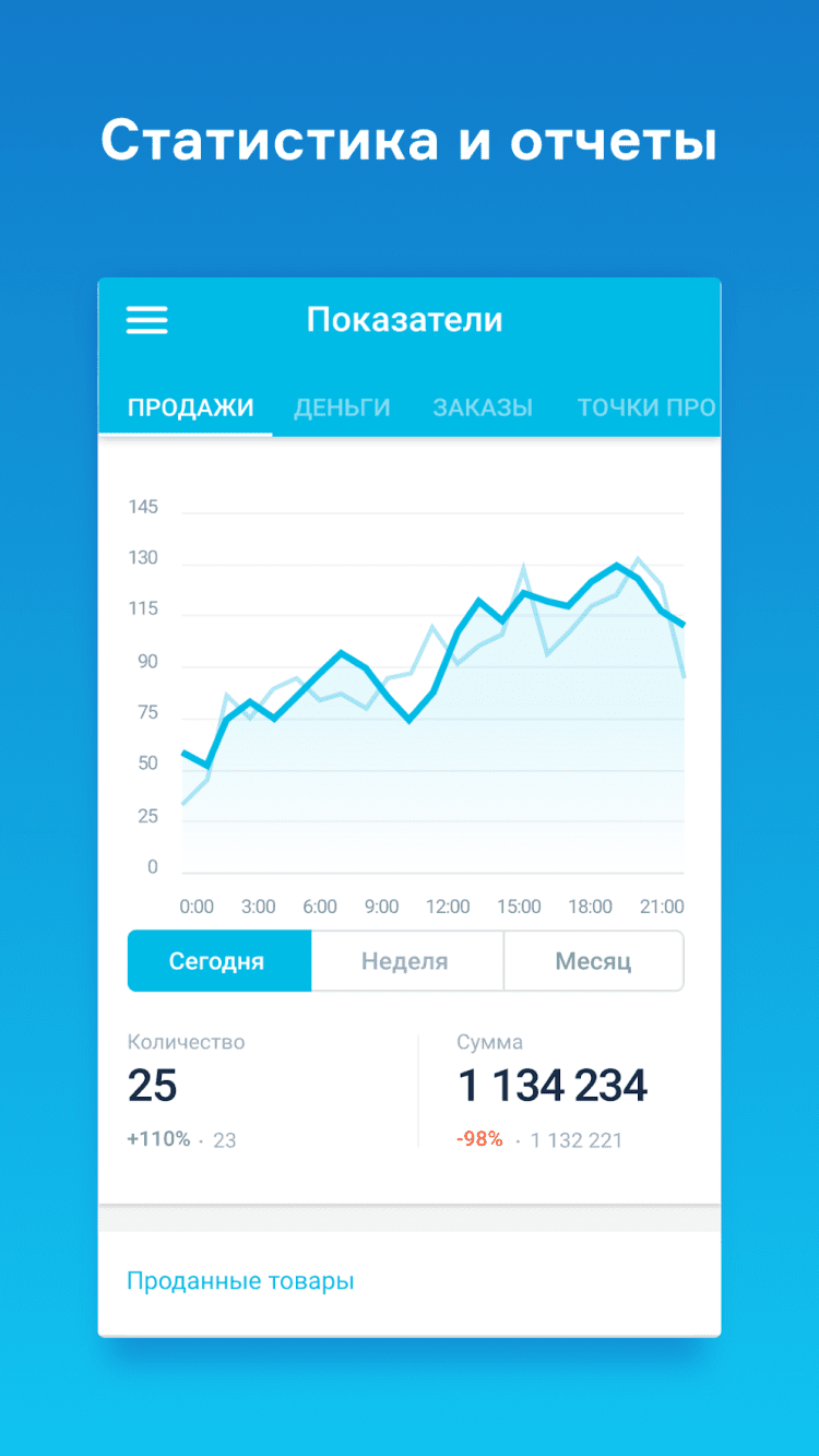 Мобильное приложение МойСклад позволяет быстро оценивать эффективность работы магазина в текущий момент. Просматривайте преднастроенные отчеты о продажах и заказах в мобильном интерфейсе. Быстро, наглядно, удобно!