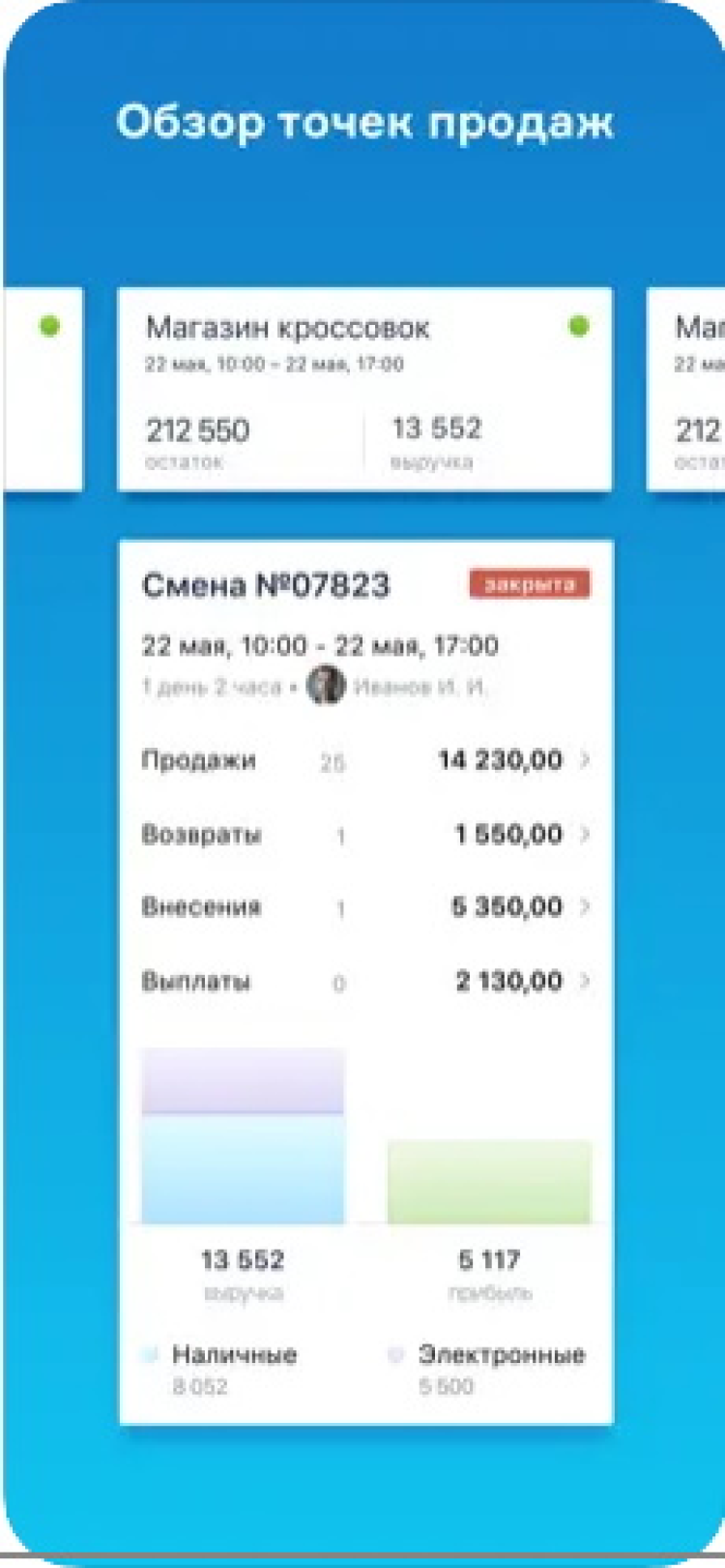 Позволяет работать с клиентами, товарами и заказами, быстро оценивать эффективность работы магазина в текущий момент. Просматривайте отчеты о заказах, продажах, финансах и работе точек продаж прямо в мобильном телефоне. Быстро и удобно!