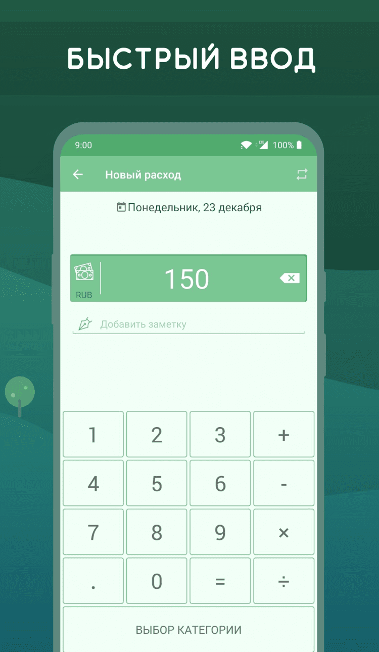 - мгновенное внесение информации о расходах;
