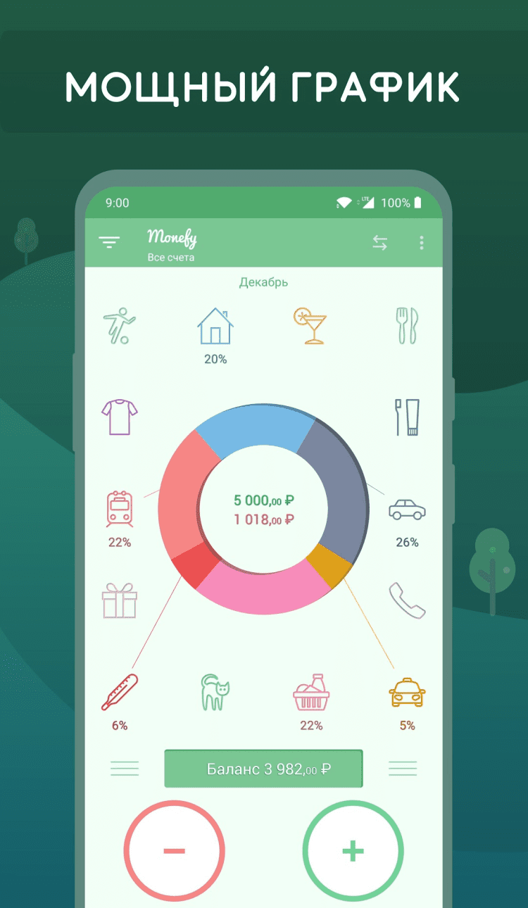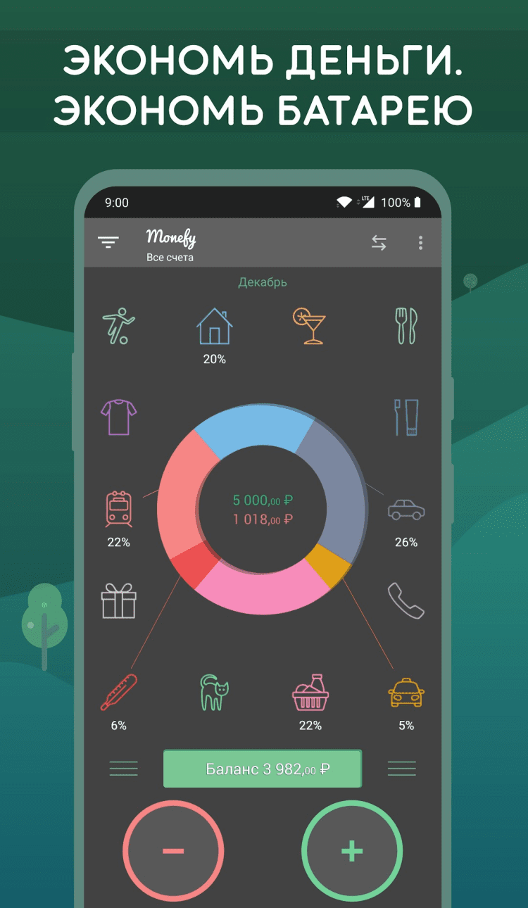 Monefy — это программа, которая поможет вам с удобством следить за расходом денежных средств, быстро вносить данные о новых тратах и просматривать наглядную, подробную статистику в любой момент.