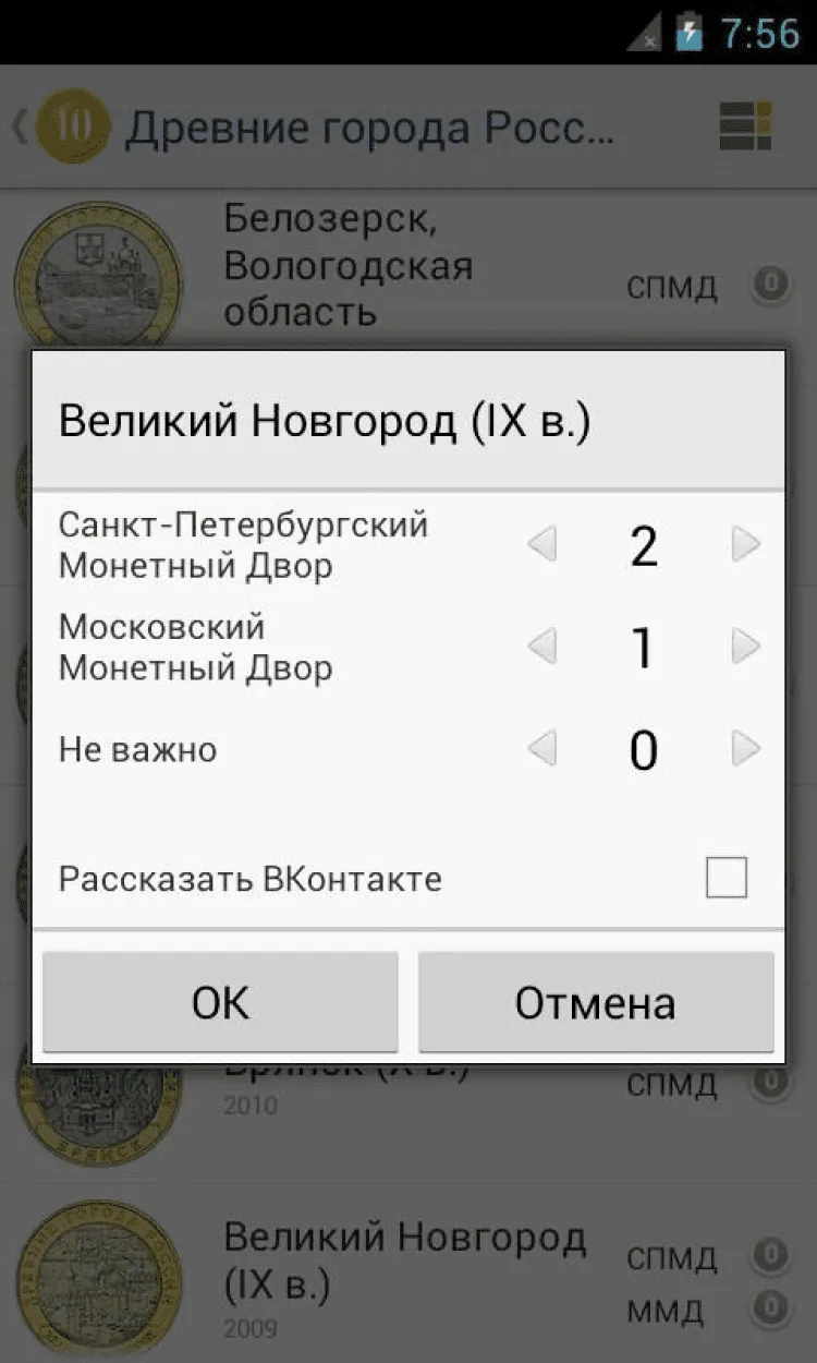 Кроме того, есть возможность отмечать и обычные монеты, но разных годов выпуска и разных монетных дворов (Санкт-Петербургский и Московский Монетные Дворы). Ведь некоторые из этих сочетаний имеют огромную нумизматическую ценность.