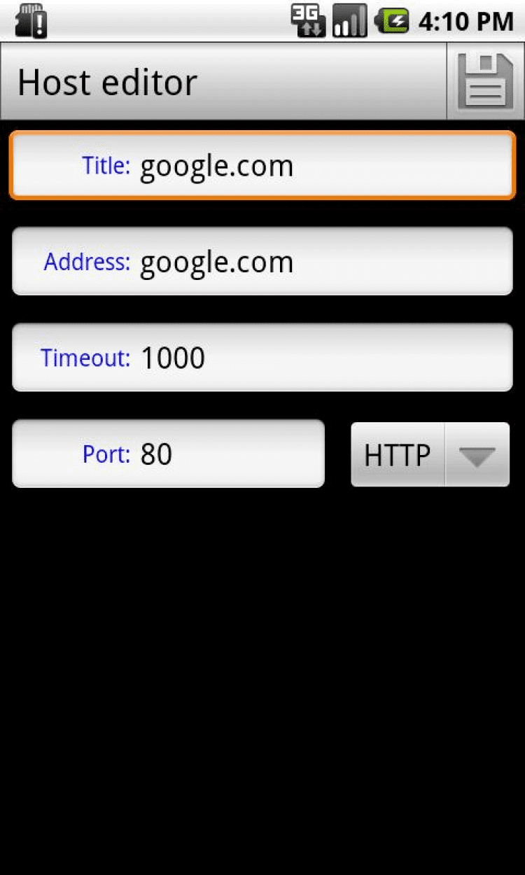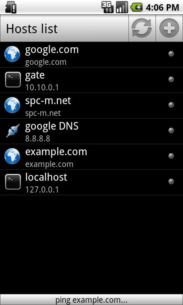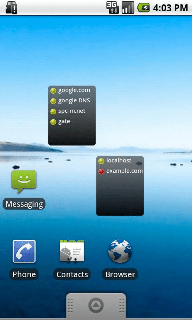 Мониторинг серверов — это программа, которая предоставляет простой виджет для одновременного мониторинга нескольких серверов с возможностью ручного обновления. Для проверки доступности используется на выбор один из трех протоколов: HTTP, TCP или ECHO. Позволяет использовать стандартную утилиту ping с настраиваемыми параметрами для пинга произвольных хостов. Позволяет получать список IP для указанного хоста (аналог утилиты nslookup). Позволяет проверять маршрут до выбранного хоста с помощью стандартной команды traceroute. Эта операция требует права ROOT и может быть не доступна на некоторых устройствах.