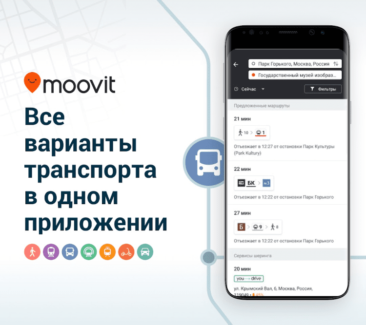 Moovit Транспортное Приложение станет вашим надёжным помощником при поездках на общественном транспорте. Позволит быстро находить оптимальные маршруты на метро, автобусе, трамвае, троллейбусе, электричке и даже велосипеде. Просто укажите, куда вы хотите добраться, а программа отобразит наиболее оптимальный маршрут и предоставит актуальное расписание транспорта в реальном времени, чтобы вы могли лучше спланировать поездку.