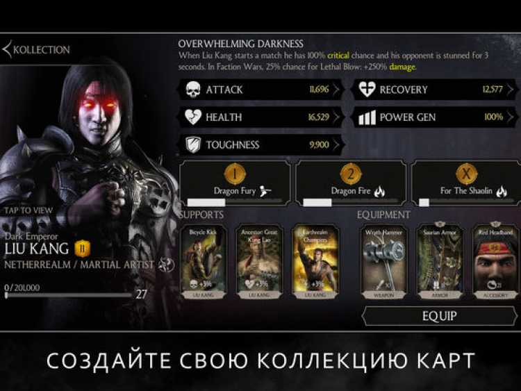 MORTAL KOMBAT X Это приложение позволит вам участвовать в Смертельной Битве на экране вашего мобильного устройства, собрав команду лучших бойцов и сойдясь с врагом в жестоких битвах 3 на 3. В игре MORTAL KOMBAT X вы сможете выбрать из большого количества знакомых многим с детства бойцов: Скорпион, Джонни Кейдж, Саб-Зиро, Соня, Китана, Ермак и многих других. Так же, в эту игру вошли и новые бойцы: насекомоподобная Ди'Вора, пылкая Кэсси Кейдж, кровожадный Коталь Кан и таинственный Кун Цзинь. Вы сможете сражаться с другими игроками в войне фракций, повышая свой рейтинг и получая еженедельные призы, а так же призывая на помощь союзников. Приятной особенностью игры являются фирменные, красочные фаталити и режим Рентгена при выполнении особых комбинаций ударов. Помимо этого, игра MORTAL KOMBAT X обладает системой наград и достижений, которые можно открывать как в консольной, так и мобильной версии игры.