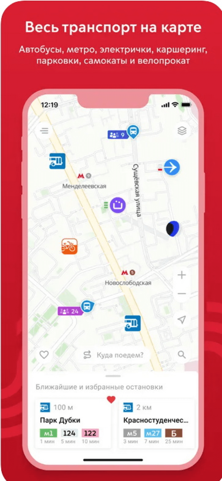 Благодаря этому приложению, вы сможете сэкономить время и деньги. Оно предназначено для выбора оптимального маршрута: здесь вы быстро подсчитаете время в пути, сориентируетесь по необходимым пересадкам и заранее узнаете стоимость поездки. Интересной особенностью программы является возможность найти ближайшую станцию велопроката, забронировать самокат или каршеринг и даже заказать такси, если поездка на транспорте окажется слишком долгой. А если вы планируете поехать на Аэроэкспрессе или Сити-шаттле, то в программе Московский Транспорт вы всегда можете купить билеты.