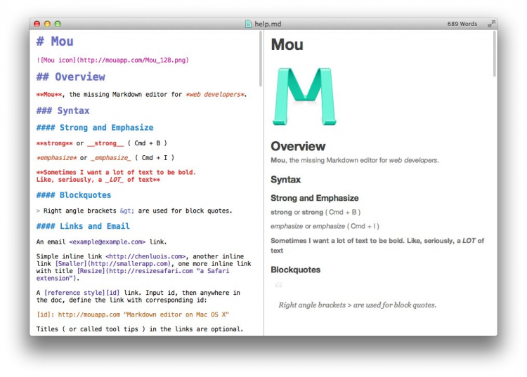 Mou Редактор исходного кода, расчитанный, в первую очередь, на веб-разработчиков.