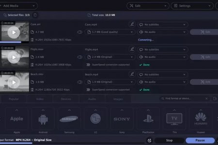 - Более 200 профилей быстрого конвертирования для популярных мобильных устройств, включая последние модели iPhone, iPad, Samsung Galaxy, Sony PlayStation и пр.;