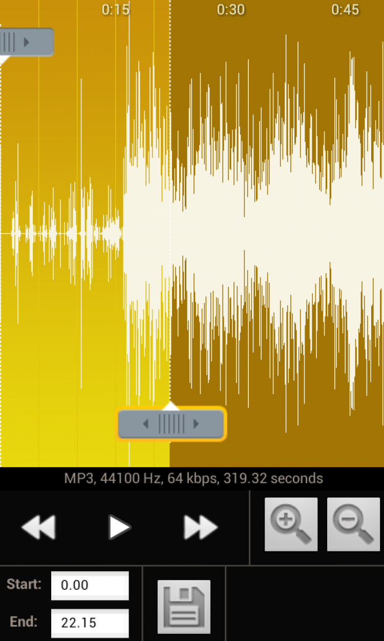 - Выберите стартовую и финальную точку нужного вам рингтона.