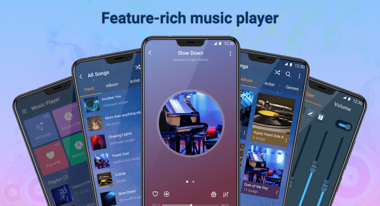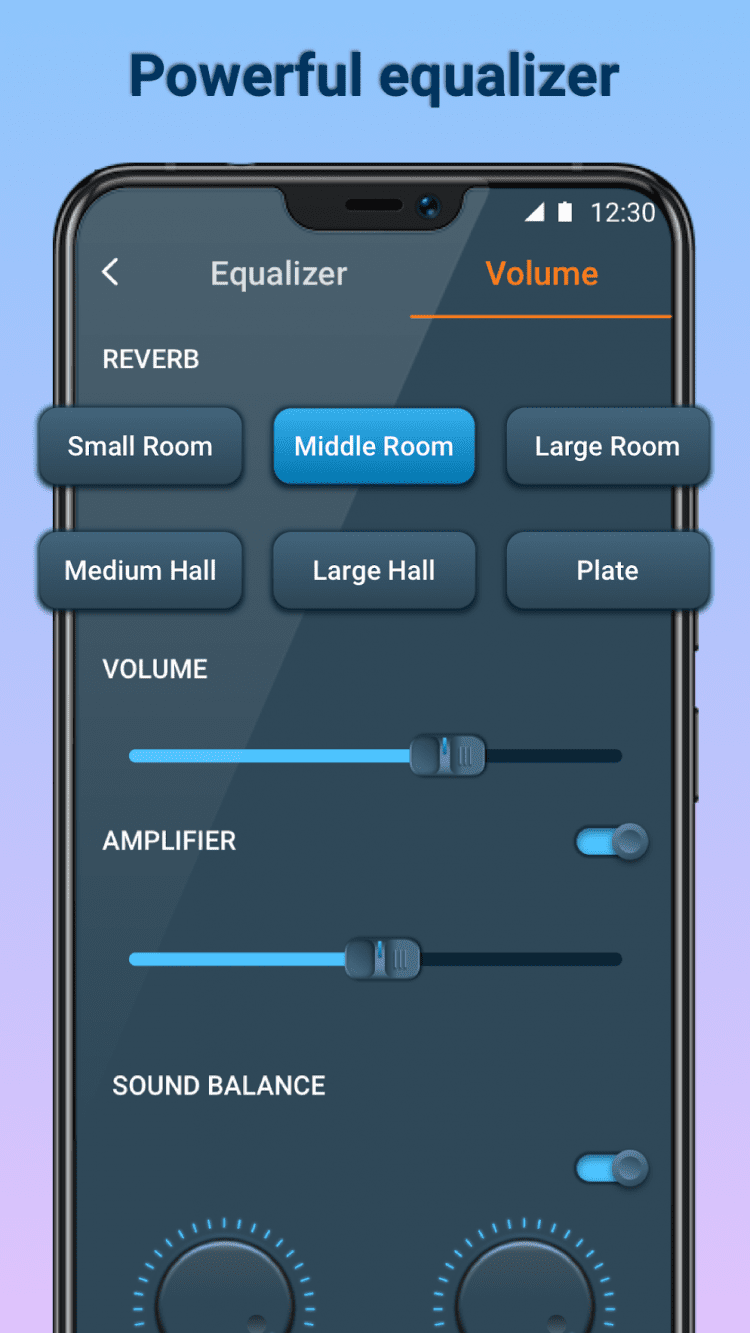 - в приложение встроен пятиполосный эквалайзер для усиления басов, улучшающий качество прослушиваемой музыки;