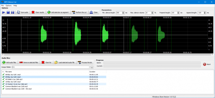 MP3 Silence Cut — это программа для нарезки аудио файлов в формате MP3. Она автоматически нарезает файл на части, используя в качестве маркеров сегменты с "тишиной". Поддерживает пакетную обработку файлов.
