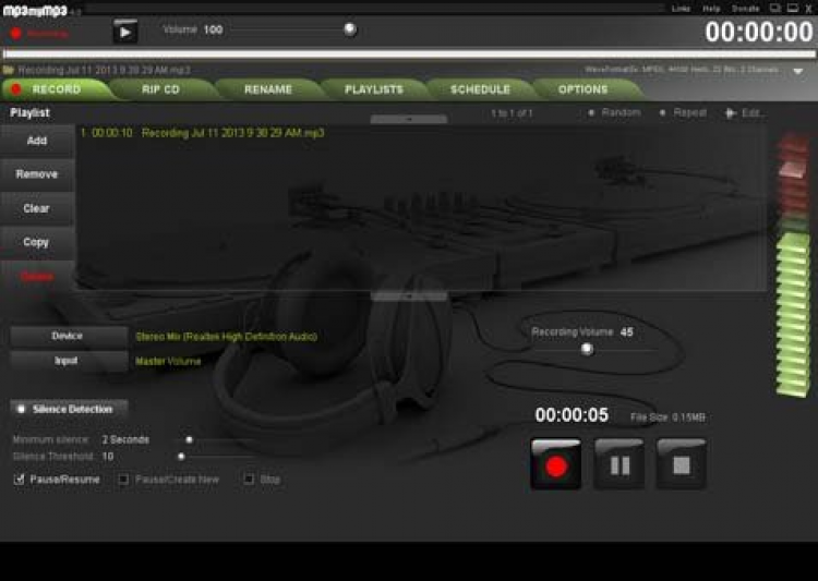 MP3MyMP3 - это простая в использовании программа, которая позволяет записывать звук со звуковой карты и сохранять записи в формате MP3 или WAV. С ее помощью можно вести запись звука с микрофона, онлайновых стримов и подкастов, CD дисков, телефонов, игр, а так же записывать разговоры в Skype. MP3MyMP3 обладает интуитивно понятным интерфейсом и большим набором полезных функций, которые позволяют легко и быстро записывать звук из различных источников. Она также позволяет копировать музыку с аудио дисков и сохранять ее в формате MP3. А с помощью встроенного планировщика вы можете составлять расписание для записи онлайновых стримов и радиостанций. Также в MP3MyMP3 есть функция пакетного переименования аудио файлов.