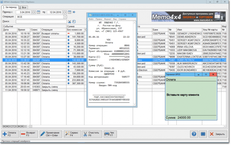 MP4x4 «Торговый эквайринг» - это программа для работы с платёжными картами через эквайринг ПАО Сбербанк.
