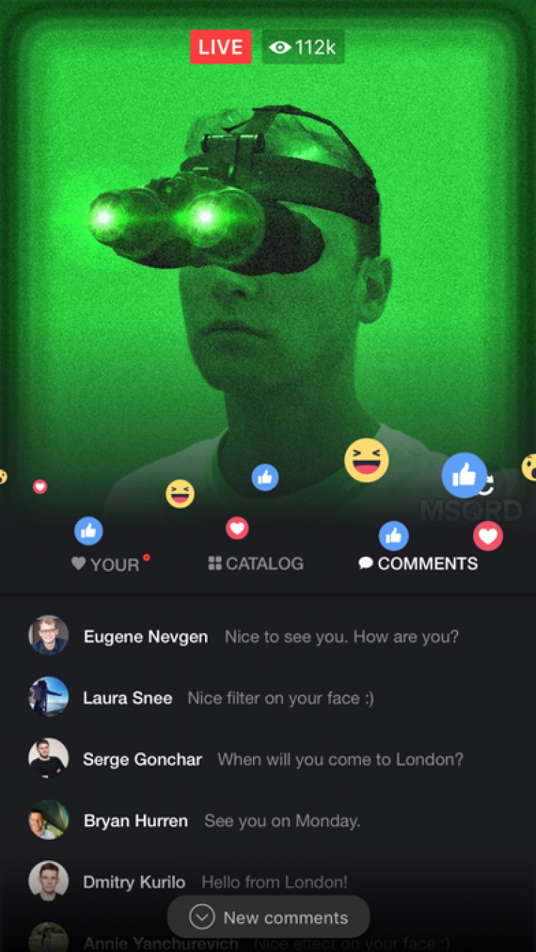 MSQRD обладает огромным количеством прикольных анимированных масок. Каждую из них вы можете примерить и увидеть результат в режиме реального времени, прямо во время съёмки. Создавайте фотографии и даже видео в прикольных и реалистичных масках и делитесь ими с друзьями удобным для вас способом: через практически любые мессенджеры и социальные сети.