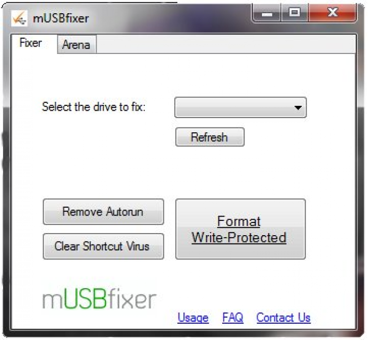 mUSBfixer - это небольшая программка, позволяющая очищать USB-накопители от авторан-вирусов и форматировать "неформатируемые" флешки. Компактный пользовательский интерфейс mUsbFixer предоставляет четыре опции для выбора диска, обновления списка дисков, восстановления папок быстрого доступа и форматирования диска. Простая компоновка элементов управления должна сделать довольно очевидным, как следует использовать приложение.