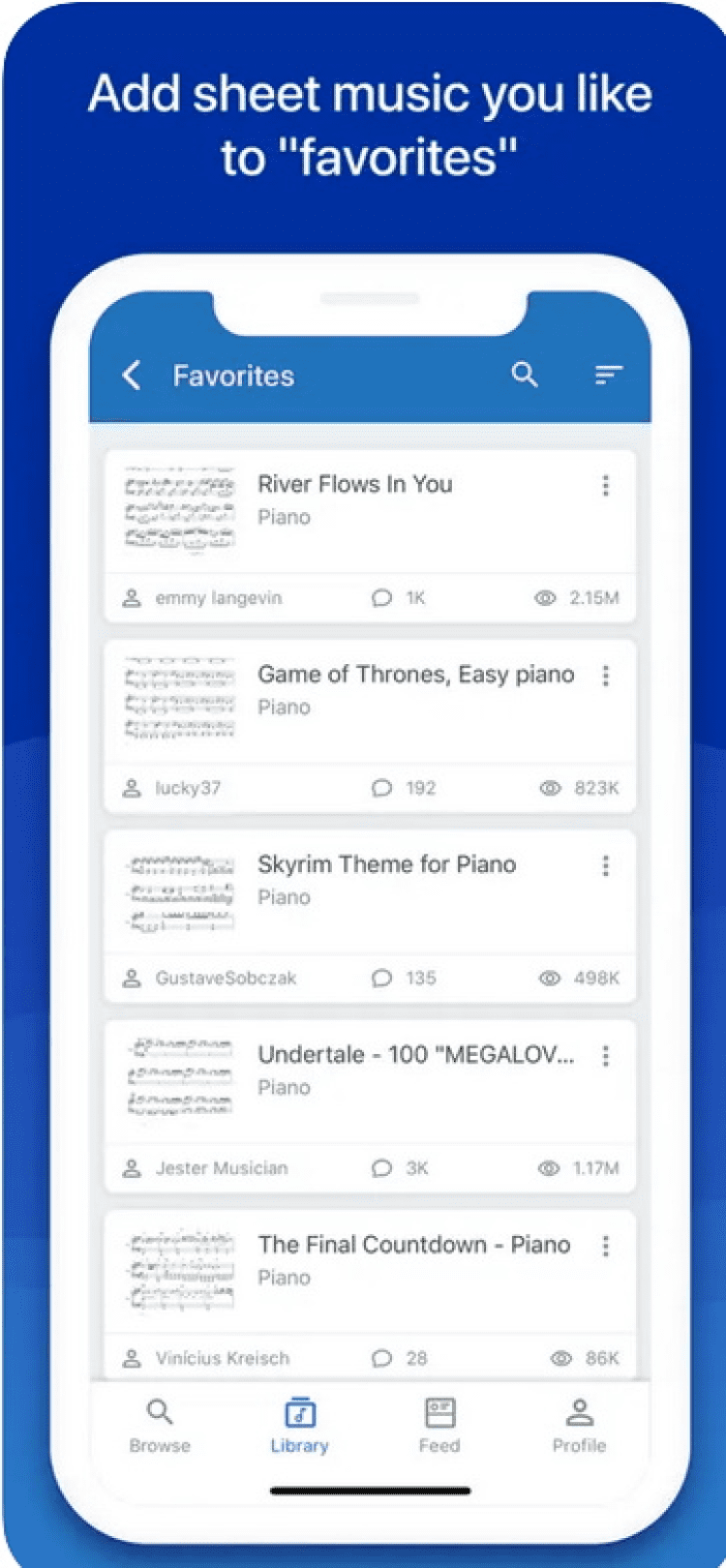 - Возможность просмотра избранных нот в офлайн-режиме. Избранные ноты загружаются на устройство, поэтому пользователь имеет к ним доступ даже при отсутствии интернет-соединения.