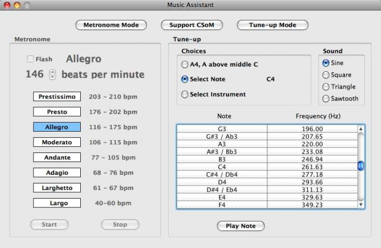 Music Assistant С помощью этой программы вы сможете устанавливать темп мелодии и настраивать музыкальные инструменты. Music Assistant умеет работать в диапазоне от 40 до 120 ударов в минуту. В этот диапазон попадают практически все базовые музыкальные инструменты.