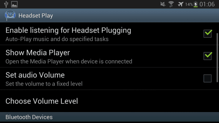 Music Auto Play Эта программа будет автоматически запускать музыкальный проигрыватель на вашем мобильном устройстве и поможет насладиться вашей любимой музыкой. Проигрыватель будет автоматически запускаться каждый раз при подключении беспроводной гарнитуры, либо вспомогательных устройств.
