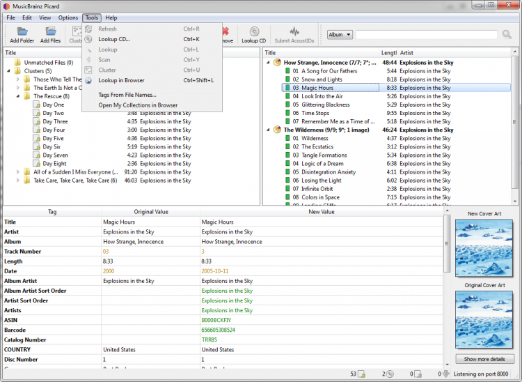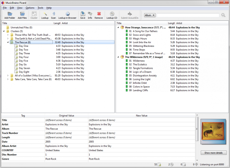 Теги можно редактировать вручную, а можно поручить поиск данных самой программе. В качестве источника информации она использует сервис MusicBrainz. Программа не просто ищет информацию, но и сразу прописывается ее в теги, позволяя сэкономить массу времени.