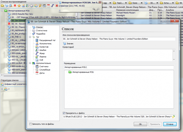 - большое внимание уделено работе со списками воспроизведения. Программа поддерживает большое число форматов файлов списков воспроизведения и предоставляет возможность синхронизировать их содержимое со списками, хранящимися в базе данных. Так же как и при редактировании тегов доступны операции с буфером обмена и многоуровневая отмена действий.