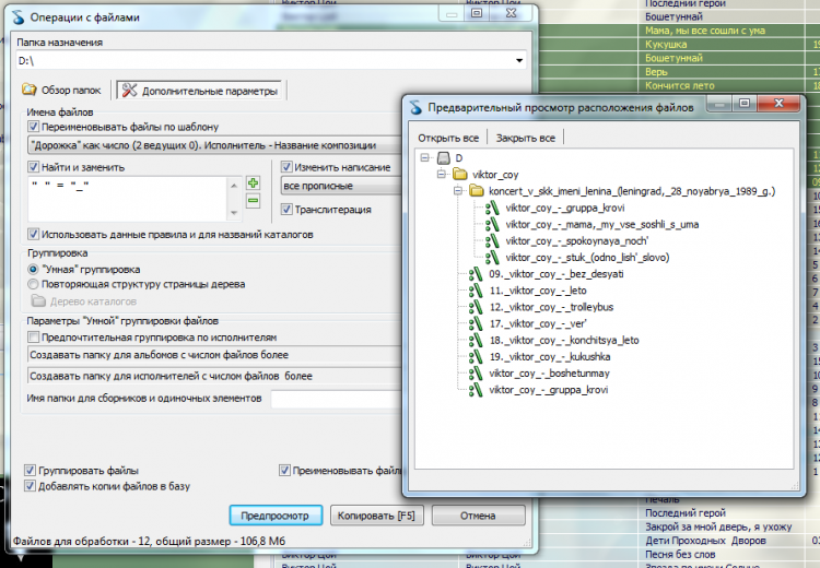 - программа имеет встроенные средства для выполнения основных операций с файлами, которые позволяют копировать, перемещать, переименовывать файлы по шаблону, а также уникальную функцию по автоматическому размещению файлов, которая поможет упорядочить музыку на компьютере;