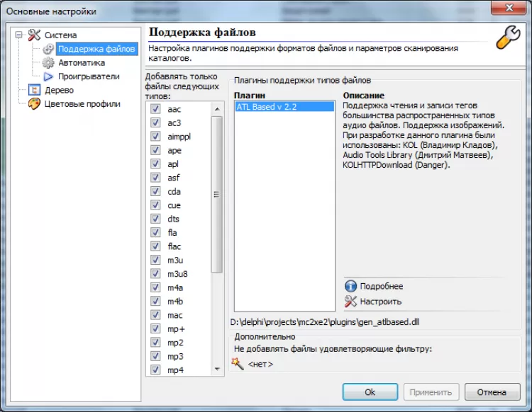 - для воспроизведения файлов может быть использован как встроенный проигрыватель на базе LibZPlay, так и ряд «внешних» проигрывателей;
