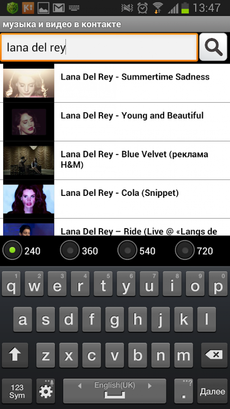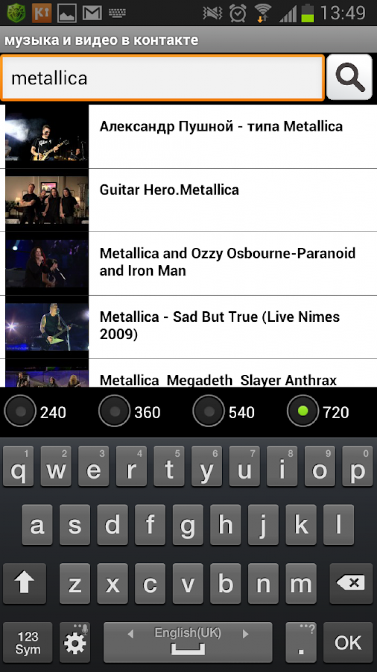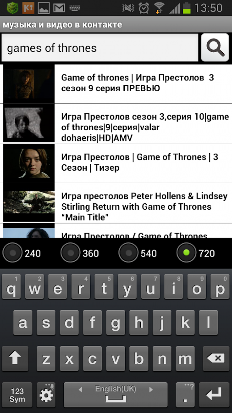 - возможность выбрать качество видео перед просмотром (240, 360, 540 и 720);