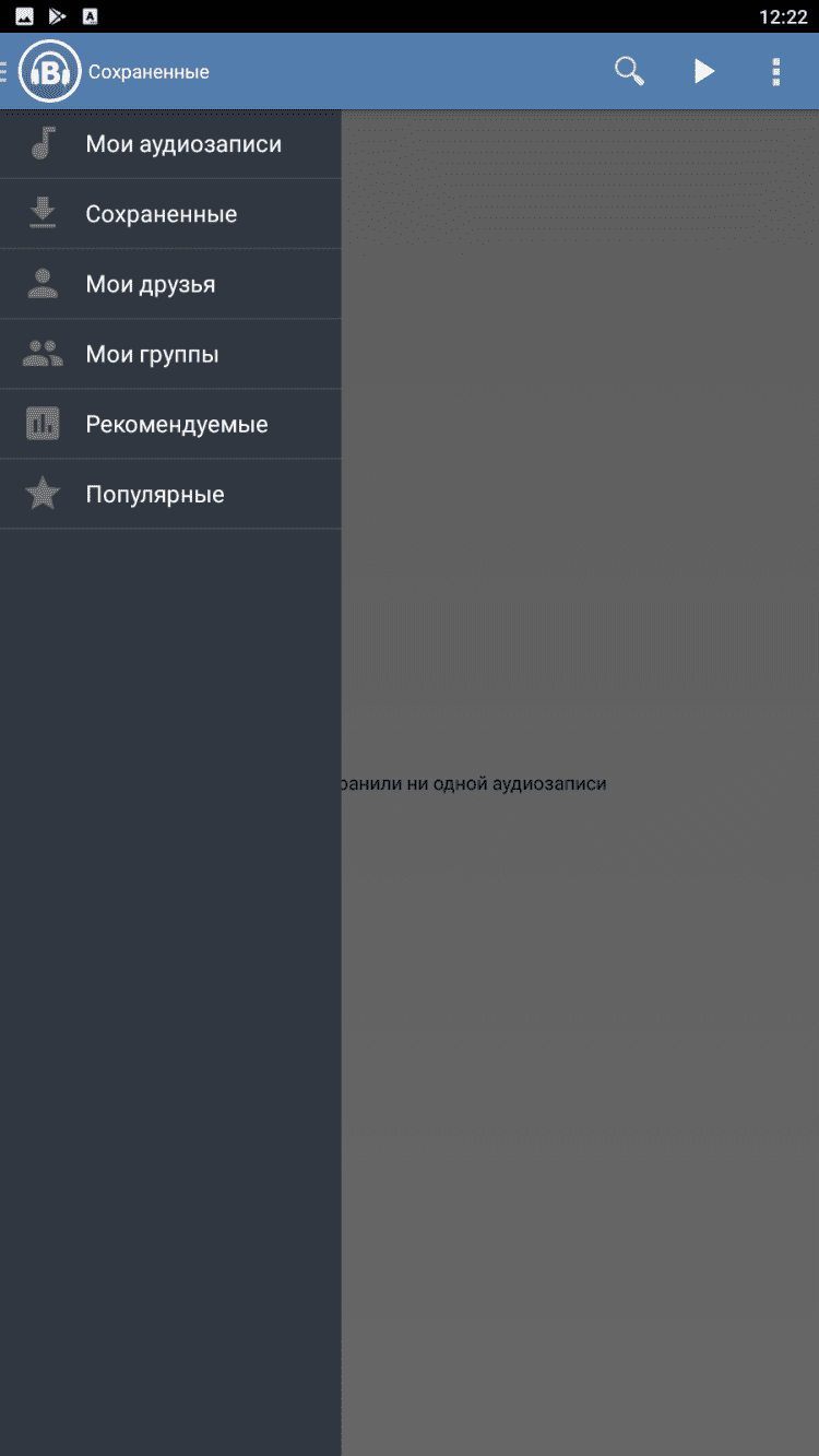 Музыка ВК Удобный музыкальный проигрыватель для воспроизведения аудиозаписей ВКонтакте на вашем мобильном устройстве, даже без подключения к интернету. Благодаря этой программе, вы сможете прослушивать не только аудиозаписи с вашей страницы ВКонтакте, но и выполнять поиск песен по исполнителю или названию, добавлять, удалять и скачивать аудио, просматривать обложки альбомов, а так же воспроизводить скачанные аудиофайлы в режиме оффлайн.