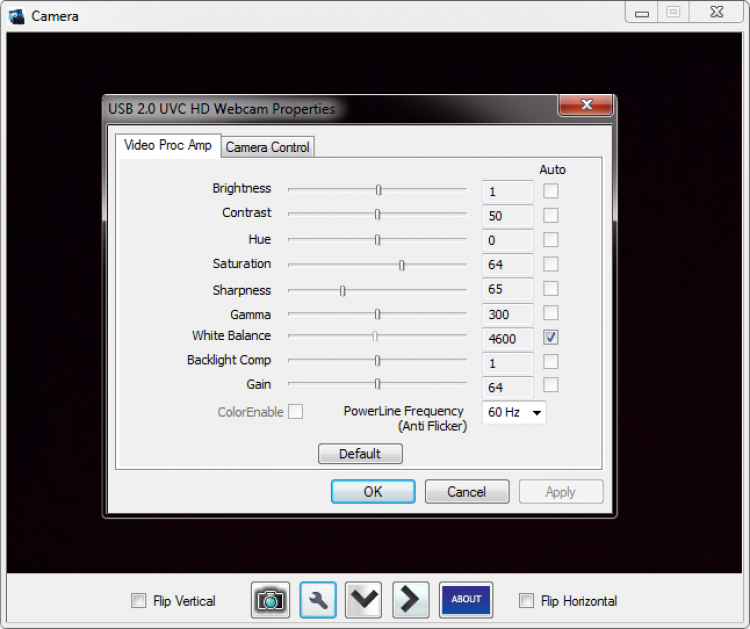 MyCamera для Windows создает изображение с настройками следующих параметров: