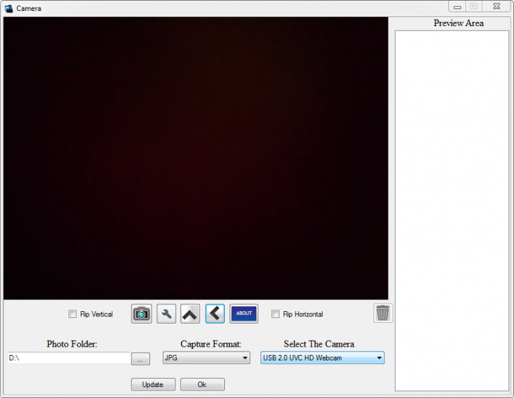 Под изображением установлена специальная панель с главными инструментами для работы. Эти опции помогают редактировать снимки – отражение по вертикали или горизонтали. Внизу выбирается папка для хранения файлов и документов, расширение и камера, с которой будет делаться снимок. Инструменты сбоку нужны для предварительного просмотра.