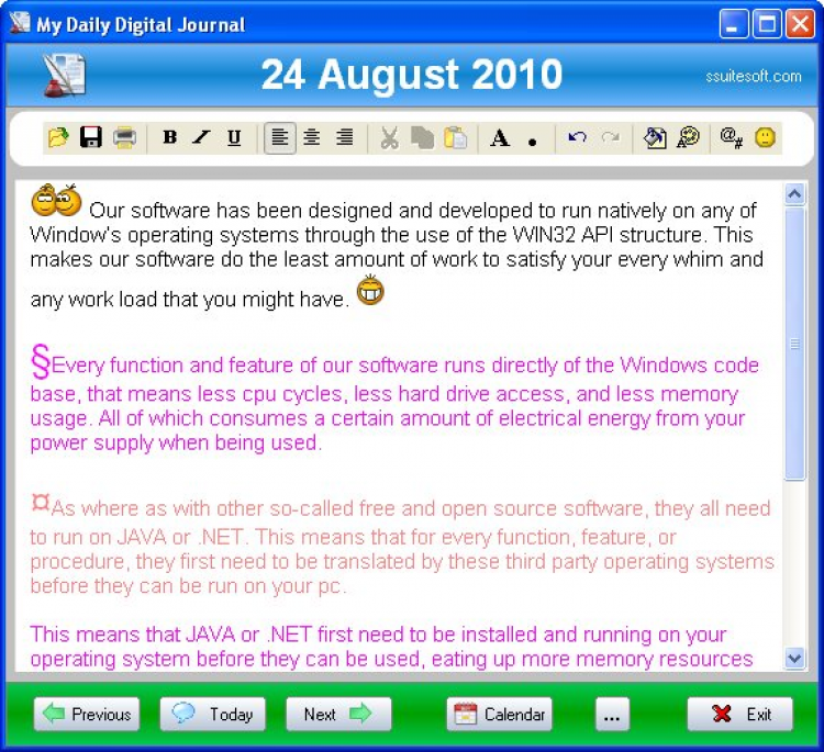 My Daily Digital Journal - эта программа представляет собой личный электронный дневник, в который вы можете записывать свои мысли, переживания, идеи и т.д.