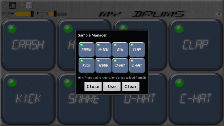 My Drums Android – мобильный симулятор барабанной установки. Минималистический интерфейс и комфортное управление позволяет легко отбивать любимые ритмы на смартфоне, наслаждаясь реалистичными звуками барабанной установки. Приложение дополнительно включает библиотеку звуков, предоставляя возможность записывать собственные треки.
