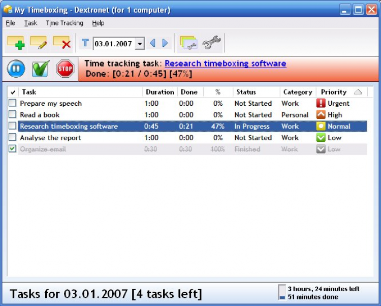 My Timeboxing - это утилита для контроля времени затрачиваемого на выполнение какой-либо задачи.