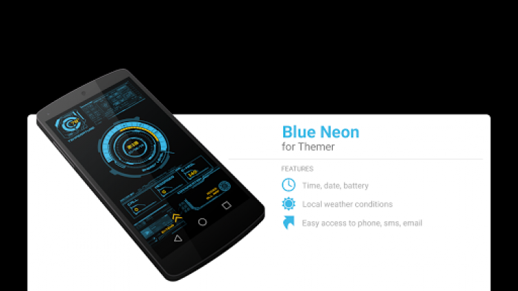 Blue Neon Theme Эта программа, выполненная в стиле Sci-Fi, позволит вам просматривать информацию о дате, времени, состоянии батареи и событиях календаря прямо на рабочем столе своего устройства. Благодаря этой программе, вы сможете просматривать список пропущенных звонков, СМС и письма электронной почты, управлять воспроизведением в проигрывателе, а так же многое другое.