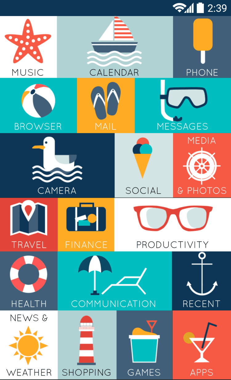 Cool Beach Theme Яркая и красочная программа, которая позволит вам получать быстрый доступ к наиболее важным приложениям и функциям мобильного устройства при помощи красочных ярлыков. Вы сможете разместить иконки для быстрого доступа к браузеру, камере, а так же умным папкам с играми, новостями и прочими приложениями.