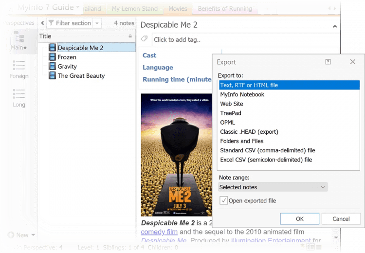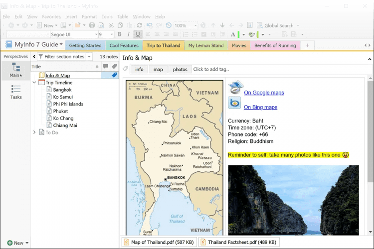 В MyInfo есть полноценный редактор текста который позволяет форматировать текст, вставлять в него чек-боксы, и умеет считать статистику по тексту. Кроме этого, у вас есть есть возможность создавать перекрестные ссылки между разными заметками.