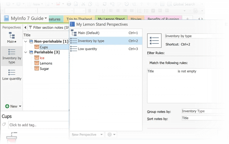 В этом PIMе можно собирать и хранить любую информацию в специальных записных книгах. Добавляйте текстовые заметки, закладки, ссылки на внешние файлы, вложенные файлы, веб-сниппеты, задачи и PDF документы. Для сохранения информации из Интернета в программе есть встроенный веб-клиппер. Он поможет сохра нить часть информации или целую страницу сайта прямо из браузера. Записи можно группировать и хранить в отдельных "записных книжках".