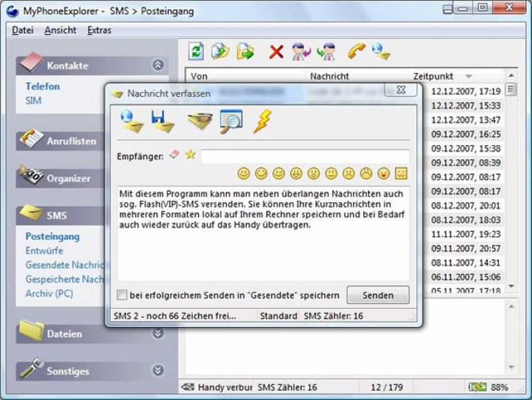 MyPhoneExplorer - это программа для Windows, которая позволяет управлять мобильными телефонами и смартфонами с компьютера. Она позволяет принимать и совершать звонки, читать и отправлять SMS-сообщения, синхронизировать контакты, работать с календарем, работать с файлами на устройстве и передавать файлы с/на компьютер.