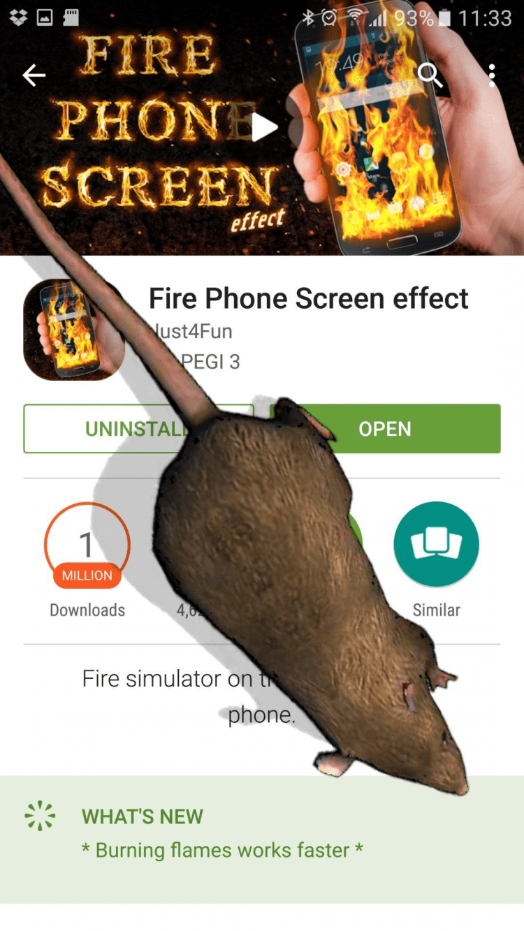 Данное приложение выпускает на экран смартфона виртуальную крысу. "Милый" грызун начинает активно бегать по всему экрану, обнюхивать все вокруг, осматриваться по сторонам.