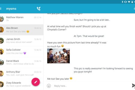 MySMS MySMS это замена стандартному SMS приложению на вашем телефоне, которая позволяет отправлять сообщения с планшета (Android) или компьютера (Windows). Его также можно использовать для бесплатного обмена текстовыми сообщениями с другими пользователями MySMS непосредственно с телефона. Можно создавать групповой чат с несколькими пользователями. Mysms автоматически синхронизирует все сообщения, отправленные с телефона, с вашим планшетом или компьютером.