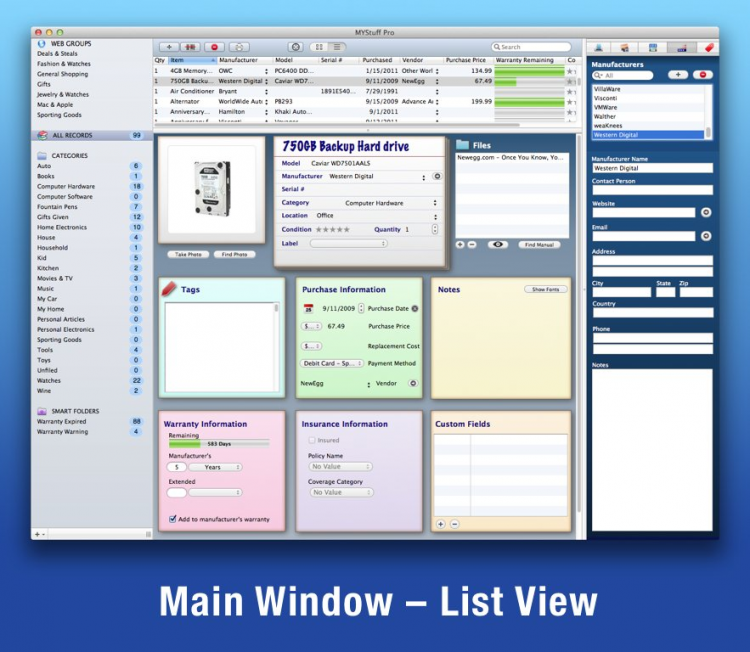 MYStuff Pro Программа, которая поможет вам вести учет вашего имущества. Вносите различные предметы в списки, добавляйте описание, количество предметов и прочее. В программу встроен сканер баркодов, что позволит вам вносить предметы в список используя веб-камеру. Так же в программу входит браузер, который позволит производить покупки не используя сторонних приложений.
