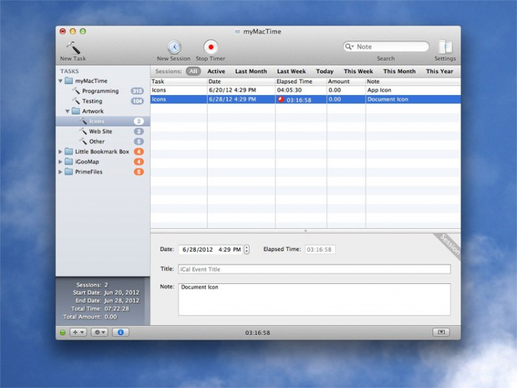 myMacTime Приложение для тех, кто хочет знать сколько времение было затрачено на выполнение проекта или какой-либо другой задачи.