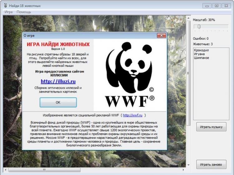 Найди животных - это игра на внимательность для детей и взрослых. Содержит энциклопедические данные и интересные факты из жизни животных, использованных в игре. Может использоваться как в обучающих и так развлекательных целях. В первую очередь будет интересна детям младших классов.