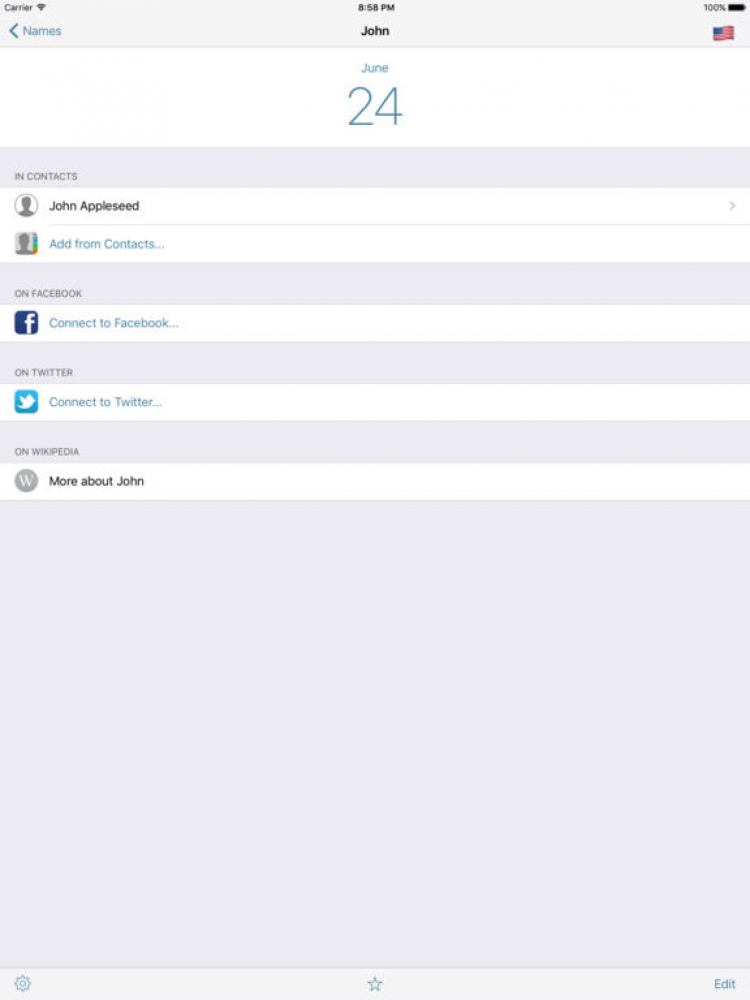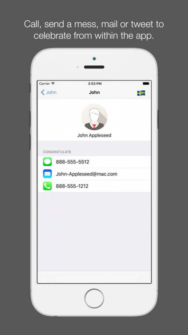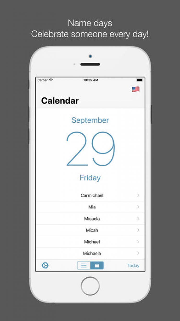 Name-days Программа-календарь, содержащая информацию об датах именин для 18252 имен из 17 стран мира. Так же данное приложение имеет функцию отправки поздравлений через SMS или в Facebook. Программа содержит встроенный браузер, который позволит вам выйти в википедию и прочесть много нового про различные страны и национальные имена.