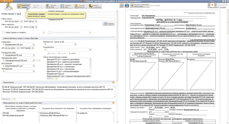 - Автоматическая генерация дополнительных бланков в нарядах для электроустановках.