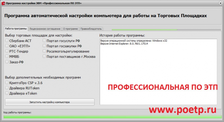 Вам не нужно скачивать себе ни корневые сертификаты федеральных площадок, ни списки отозванных сертификатов федеральных площадок, ни тем более, предлагаемые каждой из площадок специальные программы настройки. Программа автоматической настройки все сделает сама за владельцев ЭЦП.