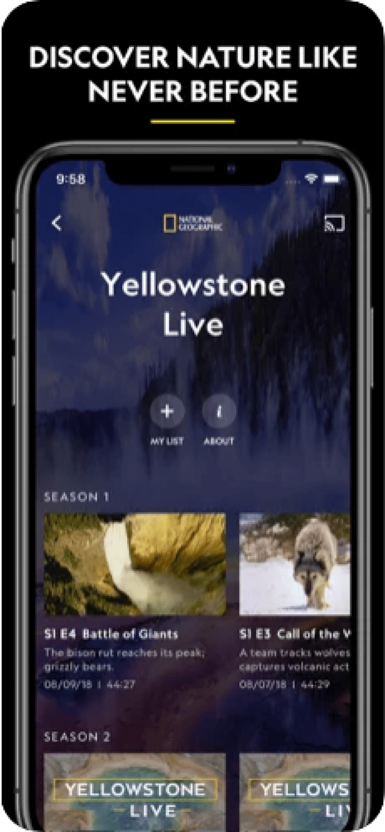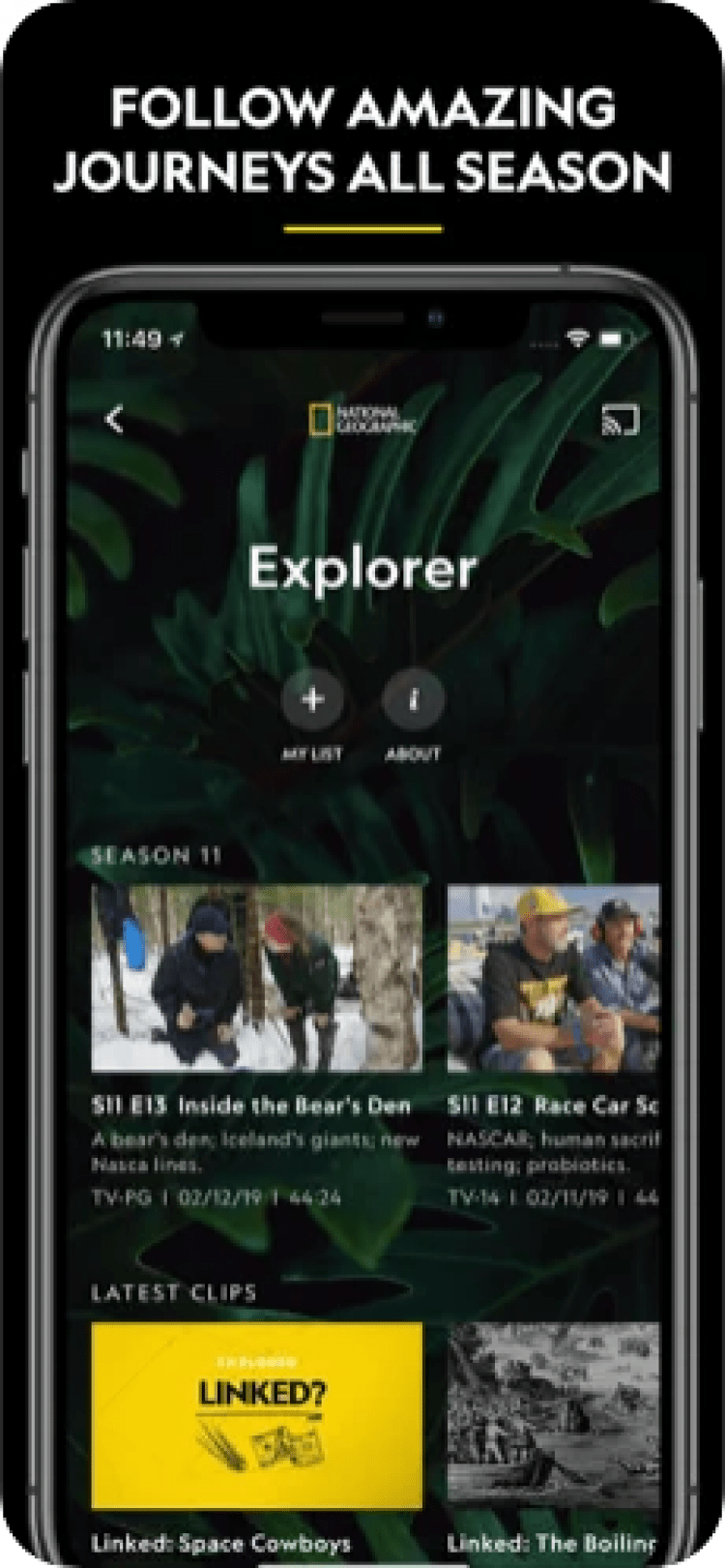 Nat Geo TV: Live & On Demand — это мобильное приложение для просмотра Nat Geo TV и телешоу Nat Geo WILD. Предназначено для iPhone, iPad и iPod Touch, а также поддерживает устройства на tvOS.