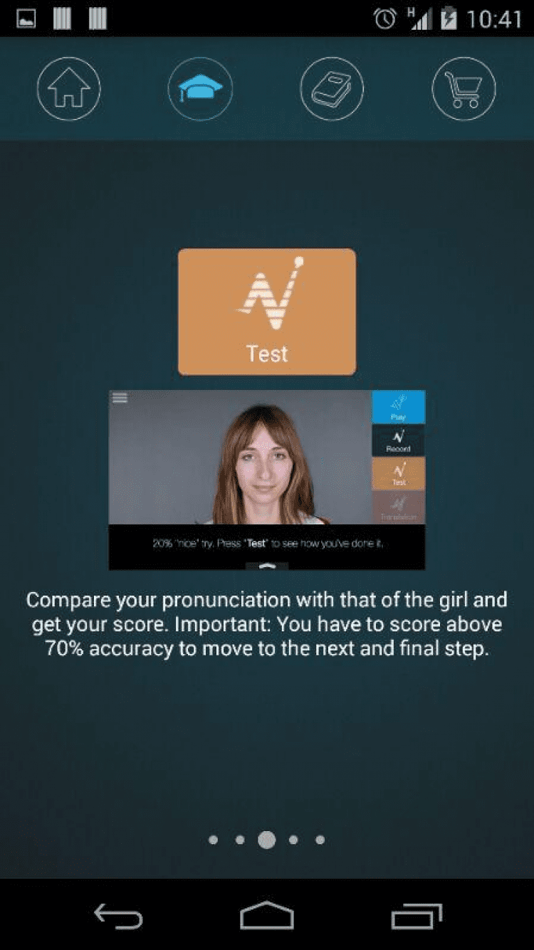 Для того, чтобы пройти все испытания, необходимо повторить каждое предложение с точностью не меньше 70%. Для этого, внимательно следите за тем, как произносит его диктор. Обратите внимание на произношение, где голос и акцент на звуках становится мягче, а где напротив, усиливается. После этого, попробуйте повторить это предложение. Программа Nativox будет записывать проговариваемые вами фразы, чтобы вы могли оценить свои успехи или узнать о своих ошибках. Для этого вам не потребуется устанавливать на мобильный телефон дополнительные диктофоны: все необходимые инструменты уже встроены в это приложение.
