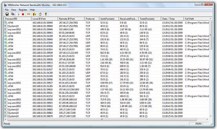 NBMonitor Network Bandwidth Monitor Программа для мониторинга локальной сети. Позволяет следить за загруженностью канала, мониторить все активные соединения и подсчитывать объем трафика, проходящего через них.