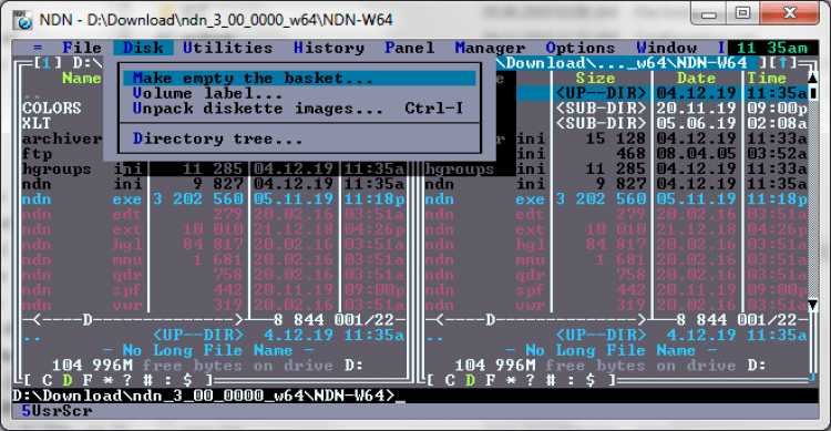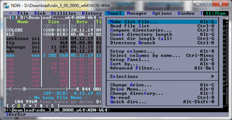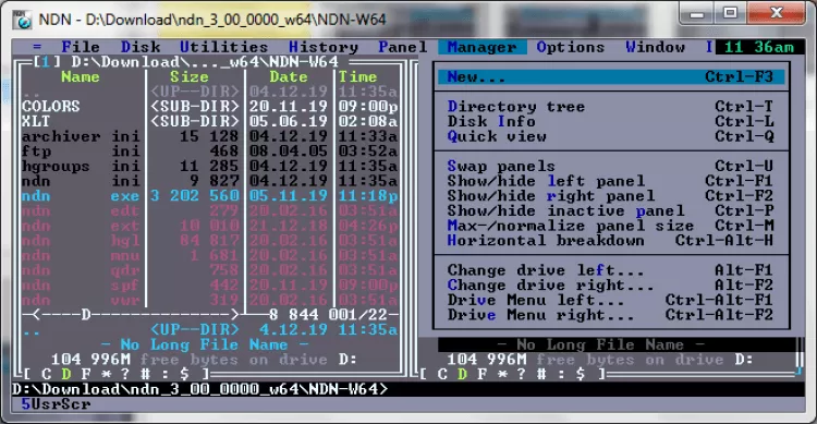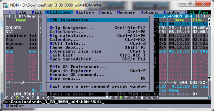 NDN (Necromancer's Dos Navigator) это портативный клон популярного в прошлые года файлового менеджера Norton Commander. Он копирует его текстовый интерфейс, предлагает вместе с тем более продвинутый набор инструментов.