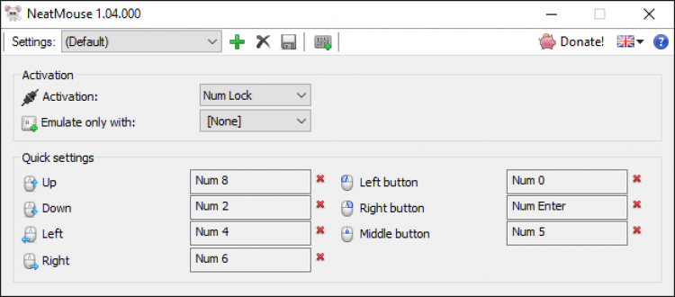 NeatMouse может быть активна не всегда. Чтобы переключиться на клавишное управление курсором необходимо использовать заранее определенную клавишу или комбинацию клавиш. Их можно настроить по своему усмотрению. Также можно настроить и клавиши перемещения курсора в разные стороны, левого/среднего/правого клика, прокрутки.